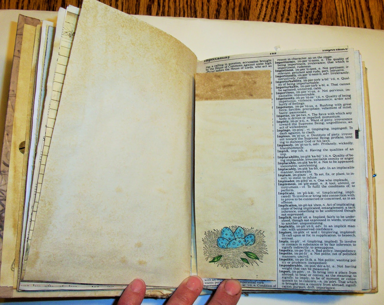 The Bird Egg image is from The Tim Holtz Wallflower Vellum collection that I also covered the cover and Back of this journal with.  It is at the bottom of a Envelope opening at the side. The Bird nest on the left is a Stamp from Stampin'up.